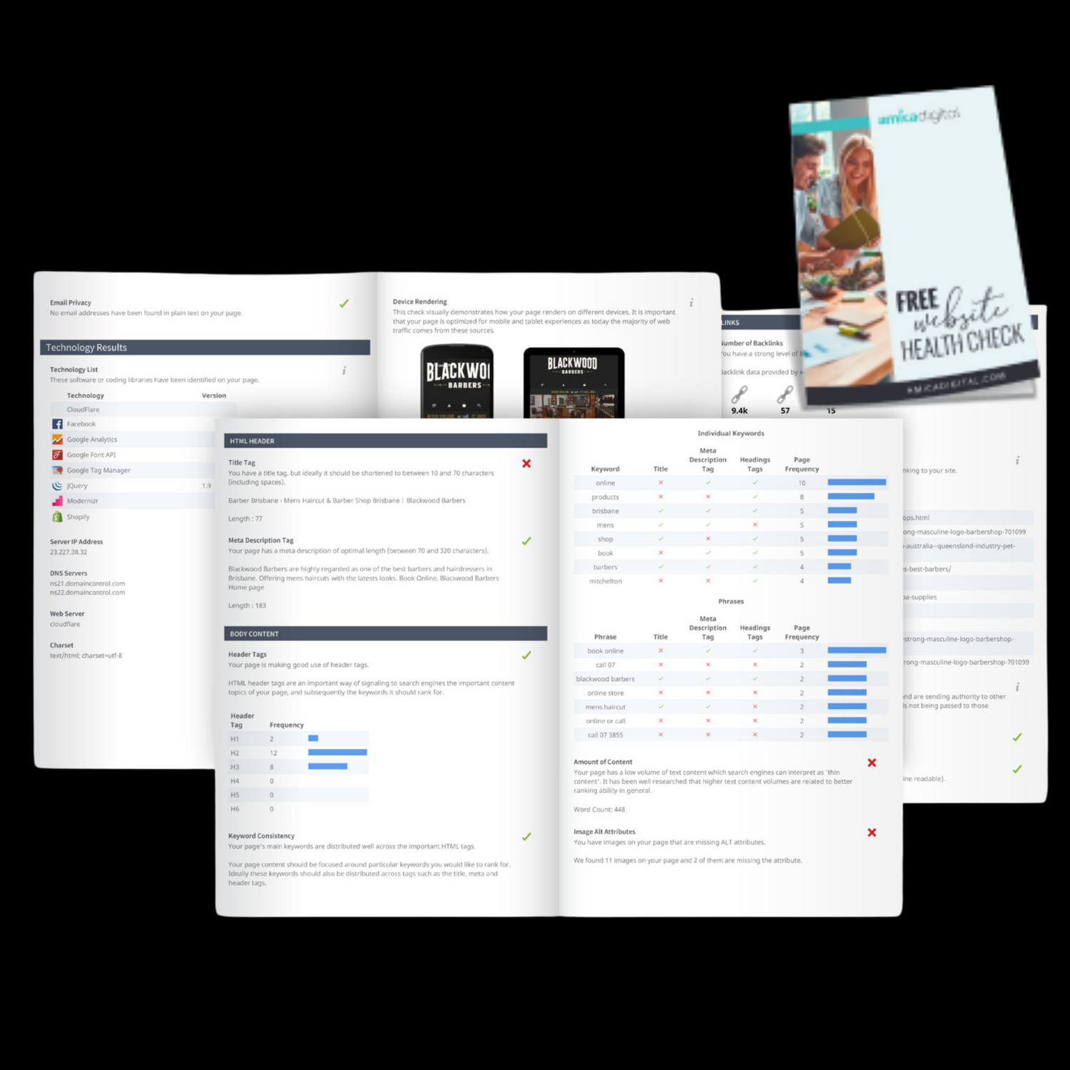 We’ll run through a full check, identify issues and errors and assess the overall performance of your site. We’ll look at the keywords that you are ranking for and your competitors. Based on data and facts, we’ll be able to advise if your website is helping you to achieve your business objectives. We will then record a video explaining our findings and the priority areas for you to address.